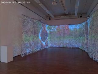 アニメーションとしては、アリーナ・ジダノワさんの透ける生地にペイントしたマルチスクリーンに実写とアニメーションを投影するインスタレーション「In Dialogue 2025-2026」と、カワイオカムラ氏の3DCG映像作品「ムード・ホール」「ムード・ホール[SideB]」(両作品は日程をずらして公開されていますので同時には観られません)が参加していました。