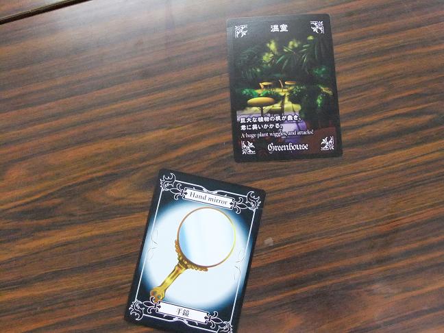 み:これは最初に発売された「幽霊屋敷編」のほうだよね。 織:そうです。幽霊屋敷に乗り込んでいったときにありがちなピンチが押し寄せてくる。そのときに手持ちのアイテムを使ってどうにかして切り抜ける、っていう。 み:ホラー映画のノリかな。 織:ですねー。悪魔とか幽霊とか出てくるので、多少、ホラーとかファンタジーとかを知らないと、対応策を探しにくいかも。 み:と、いうと? 織:例えば、「注射器」というアイテムがあったとしますよね。 み:何に使うんだ、そんなもの!? 織:ふっふっふ。実は、この注射器には聖水が入っているのですよ! み:ナ、ナースエンジェル……? 織:だから、幽霊が出てきたときは、ほら、この注射器で聖水をチュー、っと。 み:いいのか、それ。 織:そこはそれ。説得次第。でも、悪霊退治に聖水、って、そもそもホラー小説とか読んでないとわからないじゃないですか。 み:あー、なるほど。 織:そこがちょっとだけ敷居が高いかな、と。 その敷居をもうちょっと上げてしまおうというのが、今回の特別仕様な『キャット&チョコレート』でした。 なにしろ『デュアン・サーク完結記念』ですから。 「というわけで、実はこの幽霊屋敷はパステルやデュアンたちのいる世界にあります!」 参加者のみなさんから、おお、とか、なるほど、という声が上がります。 織:ハードル上げましたねー。 み:まあ、全員が深沢美潮先生の作品ファンならでは、だね。本来の遊び方とは違うんだけど……。 織:そこはゲームの作者であるところの川上亮(秋口ぎぐる)様にお伺いしまして、ファンタジー風にして遊んでいいですかと尋ねたところ、快くどうぞどうぞと言っていただけました。 み:それはよかった。 織:ほんとは6人までなんですけど、ちょっとルール変更して全員(8人)で遊べるようにしたんですよね。 み:全員に○×の札をもってもらって、個人戦にしたんだ。 織:ひとりが答えて、残りの7人がセーフかアウトかの判定をするっていう。 み:そう。で、セーフが一番多かったひとが勝ち。 織:勝ち負けよりも、どれだけ面白い答えが出せるか、っていう大喜利みたいになってましたけど。 み:それもまたよし! 織:あれ? これも写真を撮ってないんですか? み:ちゃんと撮ってあるよ。ほら。 織:あ、ほんとだ。でも、会話ゲームだけに、雑談してるようにしか見えないですねぇ。 み:と思って、ゲームの中のピンチと使用アイテムの例も、一枚だけ撮ってある。これ。 織:これ、お題が「温室」で、使用アイテムが「手鏡」ってことですよね。温室で巨大な植物に襲われるっていうピンチですけど。いったい、手鏡でどうやって切り抜けたんでしたっけ……? み:手鏡って言えば、あれだよ、あれ。ほら──。 「この襲ってくる植物というのは巨大なキノコでして、実は、わたしはキットンだったのです!」 「おお!?」 「つまり、この手鏡こそはゼンばあさんが托してくれた手鏡! 鏡をかざすと、ゼンばあさんの声が聞こえてきました。『キットンよ、キノコ変化じゃ!』。その声に従い、わたしはとっさに自分自身をキノコに変えたのです。すると、巨大キノコはわたしを仲間だと思い、攻撃をやめました!」 「おおおお!?」 織:あ、なんか、ほんとにフォーチュンっぽい。 み:確かに。このときは笑い声よりも、感心した声のほうが多かったかも。 織:これって、解答者は誰だったんでしたっけ? まさか、みやびさん? み:いやいや。参加者の方ですよ。 織:おお、それはすごい。で、判定は? み:全員一致でセーフだったね。 織:おー♪ み:最後の最後でデュアン完結記念お茶会っぽくなった! 織:よかったです♪ |