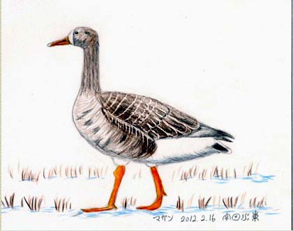 するとタケウチも歌で返事し 高光る 日の御子 諾(うべ)しこそ 問いたまへ まこそに 問いたまへ 吾こそは 世の長人 そらみつ 倭の国に 雁卵生と 未だ聞かず (←雁(カリ、ガン) 谷口高司「鳥絵塾」で) |