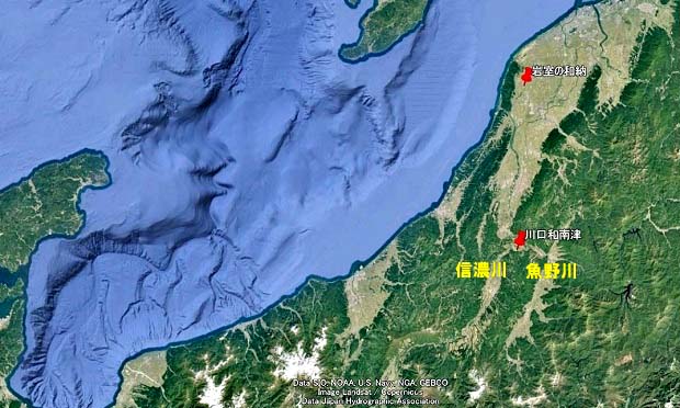 ヤチホコが、高志国( 越後)のヌナカハヒメ を妻にしようと出かけ、 ヌナカハヒメの家に着いて歌うなかで
