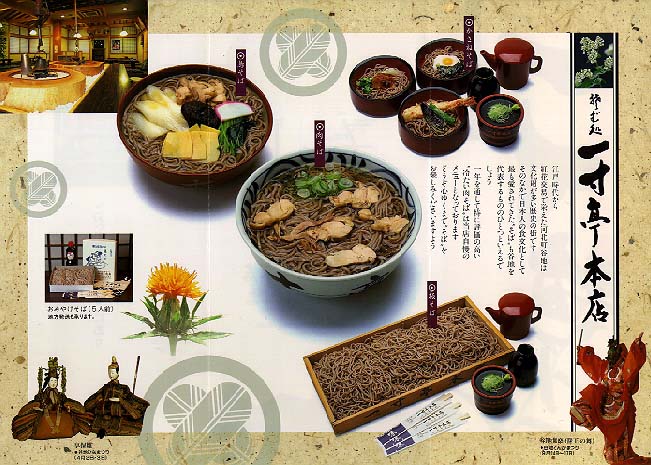 ↑蕎麦屋さんのパンフ、冷たい肉そばが名物(肉は鶏肉)