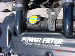 ラジエターキャップ ハーフウェイ製のラジエターキャップ。 パワーウェーブというショップに遊びに行ったときに、おみやげがわり(?)に購入。 開弁圧が1.3kg/cm2なのですが、ホース抜け等のトラブルは無いとのことです。 |