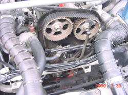 ベルトカバーを外したところ うーむ、やはり8年も経つとベルトも傷んでます。 |