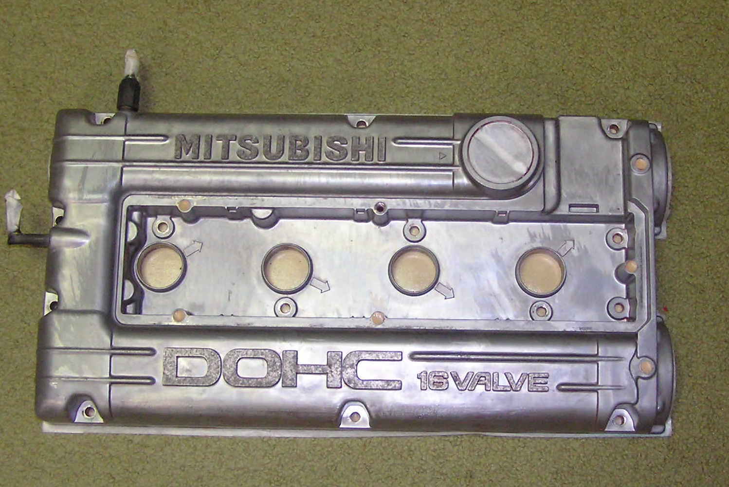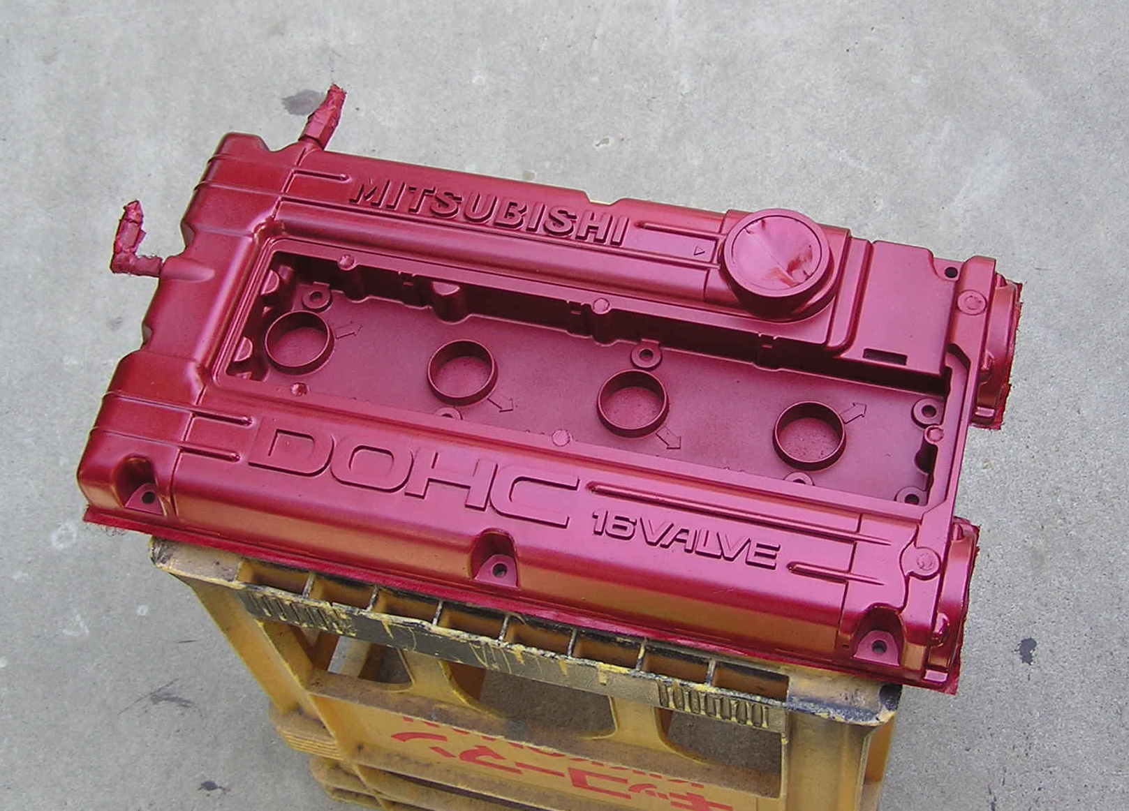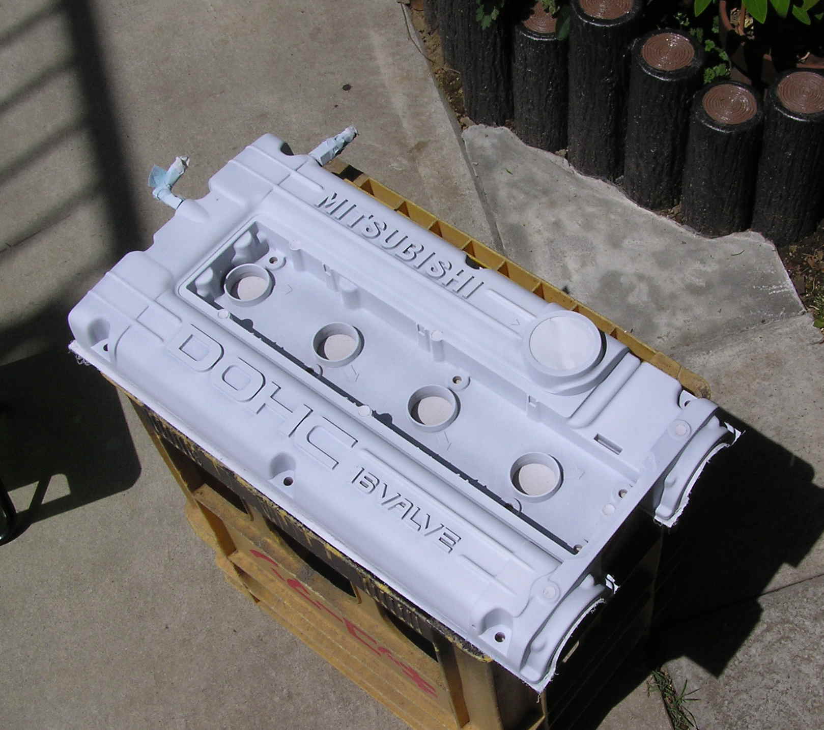 「MITSUBISHI」と「DOHC 16VALVE」の部分の塗装を剥がし、磨きをかけます。