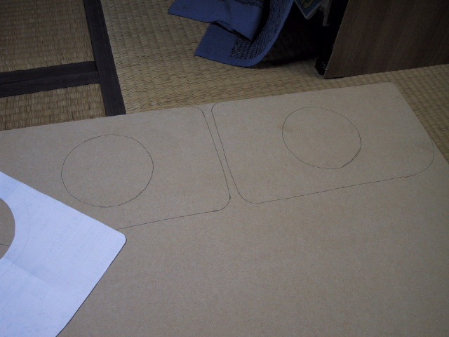 型紙ができたら、ボードに写します。ボードはベニア合板などでも良いですが、加工のしやすさなどで、MDFを選びました。木屑を固めたようなボードです。