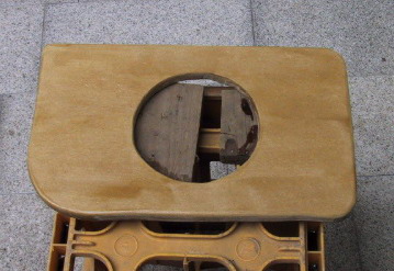 のこぎりなどを使ってカットします。ジグソーを使うと時間も短縮でき、仕上がりもきれいです。あとは、角をヤスリなどで丸めて、成型していきます。