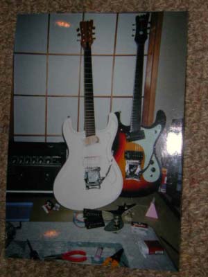 “白モズ”の隣りに立っているのは、御田氏所有の「モズライト・オブ・クラシックス」。