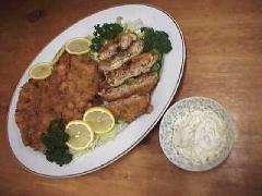材料豚小間肉等のお買い得な、お肉を人数に合わせて用意する。1人前80g〜100g大葉2〜3枚・ネギ少々 冷蔵庫にある余った野菜があれば混ぜてもOK。 調理法![]() 1、野菜は、細かく微塵切りにしておく。 小間肉は塩胡椒して野菜とよく混ぜるこの時つなぎに玉子を使うとバレにくい。 手のひら大にハンバーグ状にしておく。 ![]() 2、小麦粉付けパン粉をまぶし後は、豚カツの要領で揚げる。 ![]() 3、お好みのソースをかけ出来上がり。 |