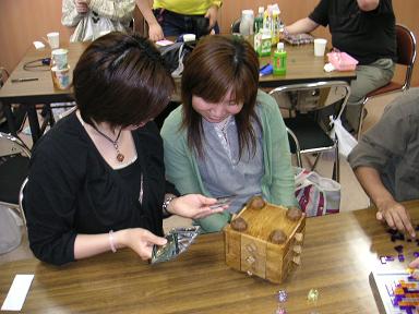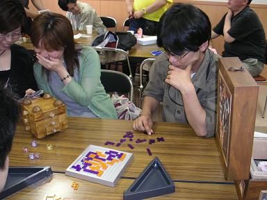 こちらは、時間が足りなくて遊ぶことができなかったけれど、立体型のボード(?)ゲーム。宝石箱になっていて、宝石(ガラス玉)を入れてから、取り合います。実はこの箱、ルービックキューブのように回転できるようになっているところがみそ。