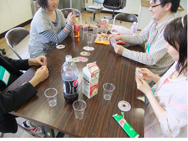 み:というわけで時間の針を戻そう。今は、5月15日の13時。お茶会の開始時間だ。場所は都内の旧小学校で、30人ほど収容できる教室の中。 織:すでに参加者のみなさんが集まってますねー。 み:織神くん、そういえば今日の参加者は何人なのかな? 織:5人です! み:……えーと、もう一度聞こう。何人だって? 織:主催のみやびさんと僕、それと、ゲームのインストラクターを勤めてくれる(ず)さんの3人を足せば8人です! み:ちょ、ちょっと寂しい……ね。 織:アットホームですよね♪ み:な……なんてポジティブシンキングなんだ……。 事前の告知が遅れてしまったこともあって、少々寂しい参加人数になってしまいましたが、そこは考えよう。ファン同士が気兼ねなく語り合える空間を作れると考えましょう。 主催者の開会の挨拶のあとは、全員が簡単な自己紹介をしました。 み:とゆーわけで、自己紹介も終わり。このあとテーブル分けする予定だったけど、どうしようか。というか、最初は何のゲームから始める? 織:あ、それは既に考えてあります。 み:ほぉ。なになに? 織:『キャット&チョコレート』のビジネス編。これをやりましょう。 み:それは何人まで遊べるの? 織:6人までですね。だから、参加者全員が参加できるかと。 み:おお! ちょうどいいね! そして『キャット&チョコレート』(ビジネス編)です。 プレイヤーは全員がビジネスマン(ウーマン)という設定で、カードで示されるビジネスマンに降りかかるピンチ(危機)を手持ちのアイテムを駆使して乗り切る、というゲーム。 詳しいゲームの説明は注釈ページを見ていただくとして……。 み:なるほど、このゲームは会話が活発になっていい感じだね。参加者のみんなも緊張がほぐれてきたみたいだ。 織:それに、答え方でその人の性格が出るんですよね。ああ、この人は、こういう人なんだなってわかるから、パーティの最初にやるにはいいと思ったんです。 み:なるほどねっ。 織:あと、ビジネス編は現実世界が舞台で、とっつきやすいですし。 み:確かに……。みんな、ちゃんと危機を乗り切ってるもん。すごいや。 織:というか、ゆいいつの「アウト」って、みやびさんなんですけど! み:あ、いや、それはぁ……ごにょごにょ。 |