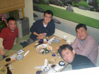 12/27に札幌支部忘年会が行われたようです。例によって小松から写真が届きました。マグロ、真二、マーチン、やまこう、小松がメンバー。結構集りましたね。秋田郷土料理で舌鼓をうったそうです。写真からはそれらしい料理は窺えなかったけどね。何食ったんだ?
