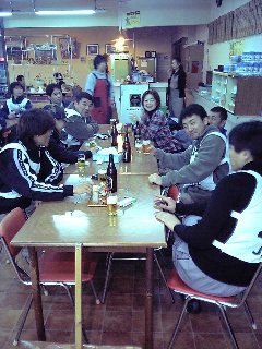 試合と試合の間には、食堂でビールとジンギスカンに舌鼓を打ち、打ちすぎて金額がトータル2万2千円にも上ったようだ。飲み過ぎだよ。小松とマグロのジンギスカン一気は見られたことと思う。2回戦目は、攻めて攻めて勝利は確実と思った瞬間、「相手の陣地には3人までしか侵入してはならない」というルールが適用されてまさかの敗北・・・。4人目の「手」が相手陣内に入った時点で負けを宣告される。その手がマグの手だったと証言する者が現れています。