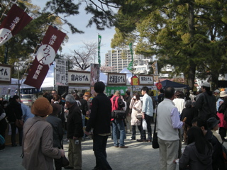 小田原城の広場では沖縄から北海道まで全国のおでんを集めたお祭り会場となって、小田原のおでんに行列がでてきました。揚げたてのかまぼこが美味しかったですね。17〜18℃近くまで気温が上がり、期間限定の箱根の地ビールもあり、ビールが進む進む。