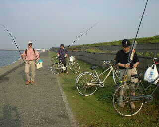 AM5:30に茅ヶ崎に集合し、AM6:00より釣りを始めたが、時間がすでに遅かったせいか地元のオヤジ連中に良い場所を取られていて、岸壁の入り組んだシケたポイントしかなかった。また、日も昇りかなり暑くなってきていることもあり、今日はヤバイなと釣りをする前からみんな口々に言っていた。しかし、前日に今晩の天ぷらのおかず分としてキス以外のものを既に買っていただけに、何としてもキスを釣ろうと意気込だのだが、みんなふぐばかりで釣果は延びなかった。