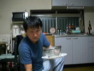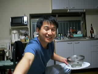 ある程度飲んだ後、スキヤキを皆で食べながら飲み始めることとなった。一番健一が日本酒を飲んでいたのだが、先に0:00頃京家がダウン。すかさず、健一が春菊を京家の鼻に。1~2時間寝た後気持ち悪くなったのかむくっと起きて便所にダッシュしていた。