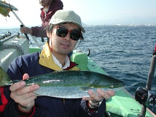 最近のイナダ釣りでなかなか釣果が出なかった。'03/09/09に参加したサンスポフィッシング・チャレンジ2003でもイナダの釣果は無かった。参加者のほとんどが釣果無しはいえ、悲しいものがあった。しかし、最近イナダが釣れているとの情報から少し期待して、職場の神奈川地区のグループ会社の釣りクラブが集まった神奈川地区釣り連合イナダ釣り大会に参加した。AM6:00に茅ヶ崎港の船宿沖右ヱ門丸に集合。競技ルールは竿かカッタクリでの一式。時間は7:00〜13:00まで。個人戦は1匹の全長。団体戦はイナダの数・総質量で勝負。参加者はざっと60〜70人。6:30頃開会式を終え、一斉に乗船し出港。7:00頃に国府津沖あたりのポイントに着き、競技開始した。最初の30分はコマセが十分に蒔かれて魚が集まるまでに時間を要したのか、釣果はポツポツ。30分過ぎからは、爆釣!イナダの入れ食いが始まり、2〜3本針の仕掛けで一家釣りも現れてきた。私も一家釣りを2回。一家釣りの時はかなり引きが強く楽しく前半を過ごすことが出来た。イナダの爆釣と共に外道のサバも入れ食いとなり、サバが掛かったときには隣の人とお祭りになることも。釣り上げたイナダのサイズは46〜48cm位のサイズ。11:00頃からは釣果も無くなり落ち着いたこともあり、食事タイム。その頃は参加者みんな釣果をそこそこ上げてクーラーが満杯になる人も(私もその一人だ)。