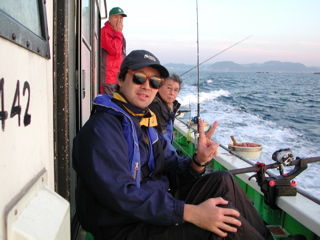 案の定、釣果はあまり伸びなかったが、アジ、鯛、トラギス等外道はそこそこ釣れ、お土産は確保できた。なかにはでかいアマダイと釣り上げた人も。