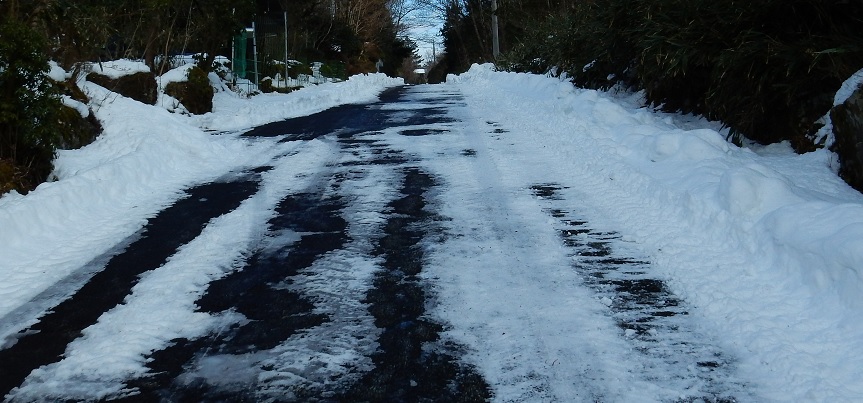 山荘の手前1kmまでは幹線道路で除雪もされていて滅多にチェーンの出番はないけれど、