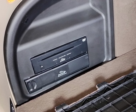 ナビユニットはラゲッジ部の左側に収納されており、2重のカバーを外すと本体を確認できる