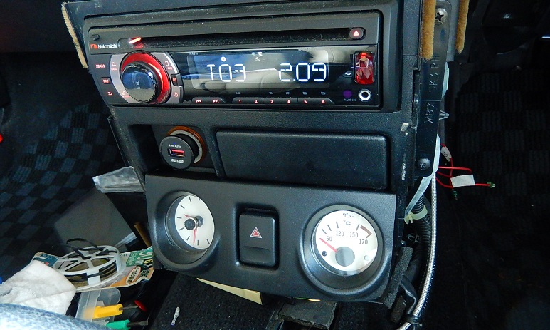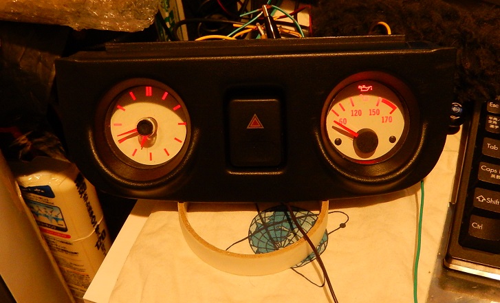 燃料計と水温計をオリジナルのままにすると、どうしても透過照明用のパネル裏のランプが必要になり、、