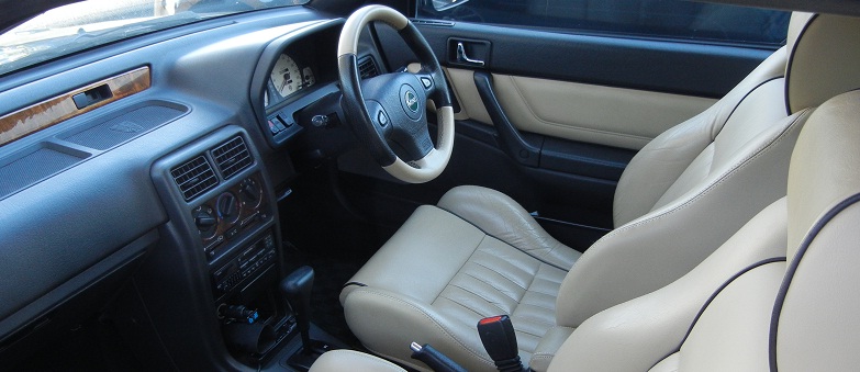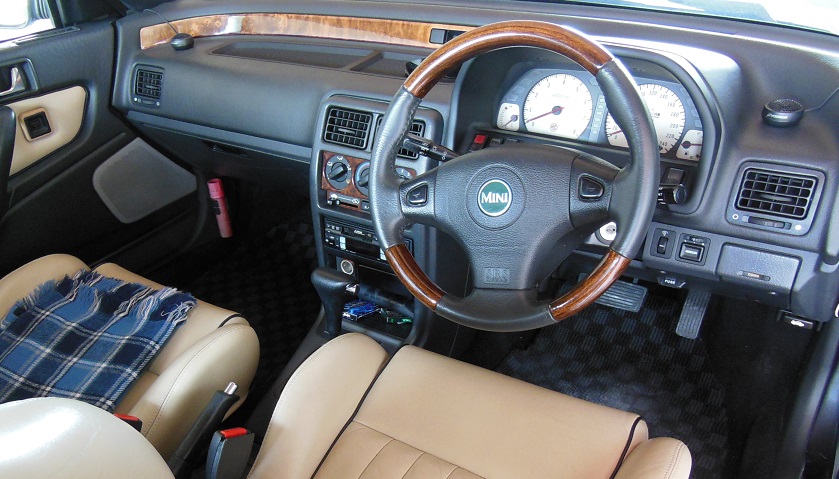 比較的小型の車体にレザーやウッドを多用して、小さな高級車を作るコンセプトは